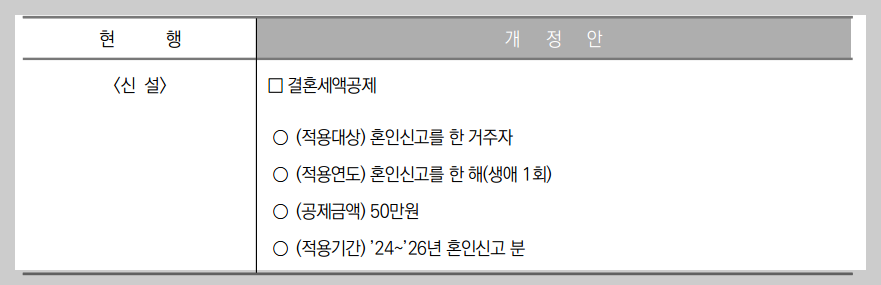 - 공제금액 : 최초 혼인신고시 50만원 세액공제