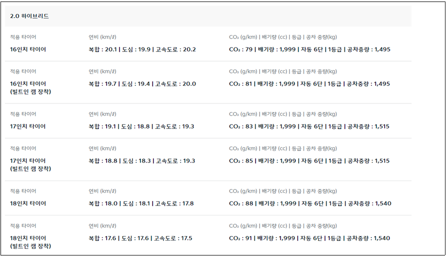 (1.6가솔린 터보 / 2.0 가솔린 / 2.0 LPI 포함)